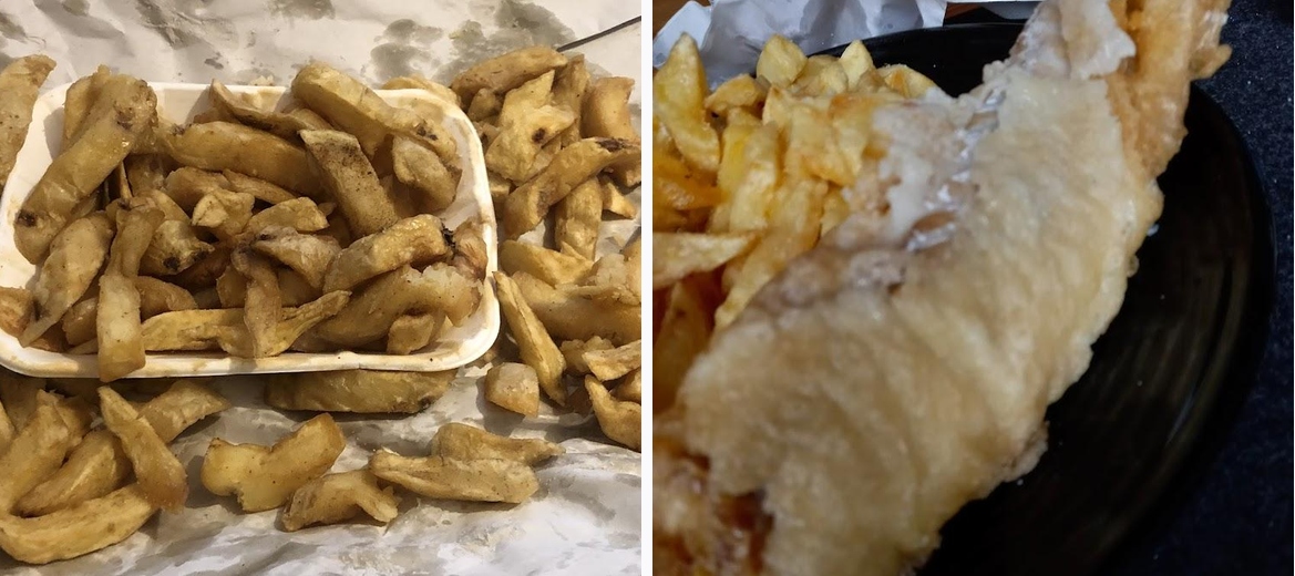 Visitors to the area. This was the only fish and chips takeaway open mid day. Food was good and generous sizes.